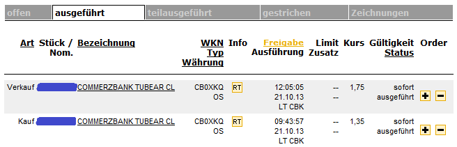 Lichtblicke bleiben mir aber auch. Den SAPschein vor 9.00 Uhr nach Zahlen zu 0,40 gekauft, jetzt bei 0,48/0,49. Vieleicht kaufen die Amerikaner auch noch SAP am Nachmittag.