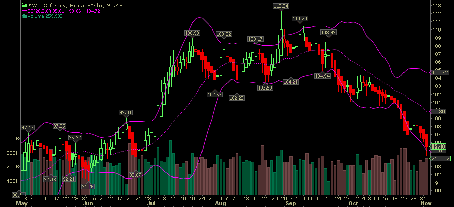oft zwischen BRENT und WTI hin und her. BRENT ist 0,46% vorne, WTI "nur" 0,22%