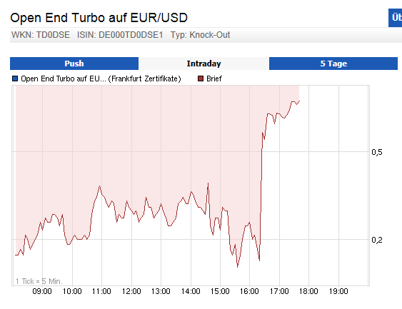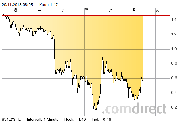 Hatte ich vorgestern schon ge und verkauft. Der Schein pendelt zwischen 0,27 und 0,36.