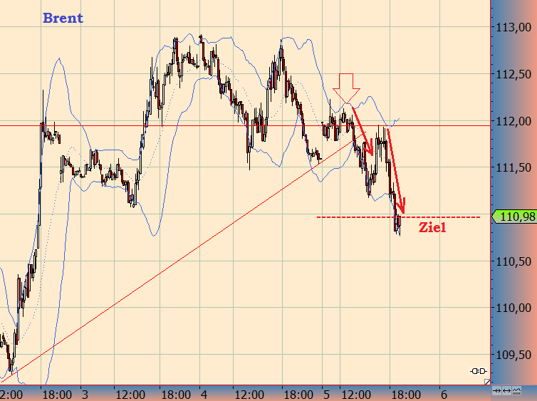Ich war bis 13:00 long! eingestellt, bis ich die "Eingebung" bekam, dass die Trendlinie, auf die sich der Kurs scheinbar stützte, von den Bankstern gekippt würde. So, dann wacker eingekauft und günstig zugeschlagen. Es lief auch alles bestens, man war aber noch ein Stück vom Kursziel entfernt (<$111,00), im ersten Tief, da fiel den Bankstern ein, dass man den Kurs ja mal zurück hoch an einen alten Widerstand reißen könnte, da sträubten sich die Haare in alle Richtungen, so wie wenn meine Katze, sie möge in Frieden ruhen, früher einen Hund sah, ihr Schwanz war auf einmal 4x so dick wie normal. So fühlt man sich dabei. Hm, gut und im 2. Anlauf gings dann unter die 111,00 = 1.40 fertig. Die Idee ergibt sich beim beobachten und studieren und ist nie ganz eindeutig, ob es auch aufgehen würde, eben nur eine Idee. Man kann erst aufatmen, wenn man den Verkaufknopf gedrückt hat. Ich atmete schon zwischendurch auf und war der Meinung, läuft ja bestens, €1.10 hatte er schon gepackt, Guido sagte noch, läuft doch top! und dann reißen sie an dem Kurs wie geisteskranke! So ist es eben es läuft mal so, mal so. Gruß