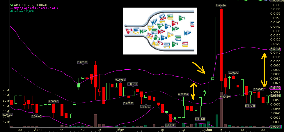 @Herb, auf den Backofen schielend, eine kleine Ergänzung zum obigen Chart... die BB sind zu Beginn des Halses natürlich enger, als aktuell, mehr aufgeweitet, die 20 Tageslinie (gestrichelt) war zum damaligen Ausbruch über den Daumen waagerecht und schau was der Kurs in einem positiven Spannungsverhältnis stand, diese fette grüne Kerze, in der der Kurs aud den BB hinauskatapultiert wurde, bis auf .015, aber noch wesentlicher, als Basis, der Transit des Kurses aus dem unteren in das obere Band, das wollen wir sehen! Schau wo er aktuell notiert? In weiten Bändern + im unteren Band. Das ist nicht unbedingt schlecht und man kann es traden, aber als Beginner würde ich sicherstellen, dass er Kurs über der 20 Tageslinie notiert oder zumindest in ihrer Nähe oder erkennbar auf dem Weg ist dorthin und dort (vorerst) bleibt (im oberen BB Kanal).