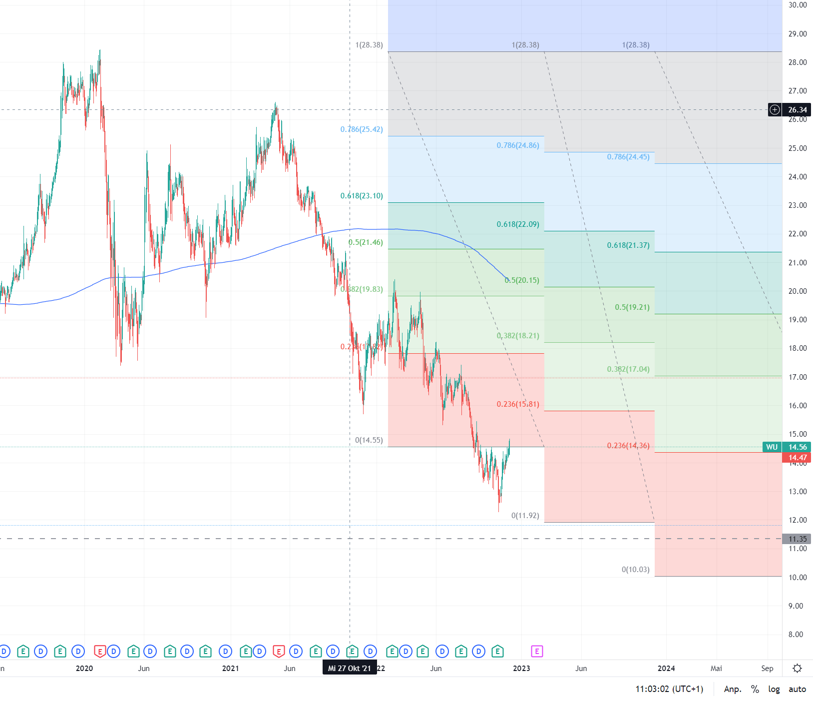 Wechselkurse, die vom Mittelkurs oder von marktüblichen Wechselkursen abweichen (die Abweichung wird "Spread" oder 'exchange rate margin' genannt) - zu Gunsten von Western Union und damit zu Ungunsten des Kunden: Durch die ungünstigen Wechselkurse zahlt er indirekt eine weitere Gebühr.