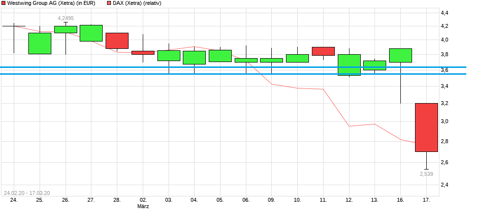 Ich könnte mir auf Grund dieses Desasters gut vorstellen, dass z.B. Aufsichtsrat Christoph Barchewitz gegenwärtig den Vorständen der AG gewaltig die Leviten liest, haben sich doch rd. 20.000 € seines am 21. August in 15.000 Westwing-Aktien investiertes Kapital ( rd. 47.925 € zu einem Kurs von 3,195 €) ) - Stand jetzt - in Luft aufgelöst. Da keine anderslautende Pflichtmeldung erfolgte, hält er diese Aktien ja noch.