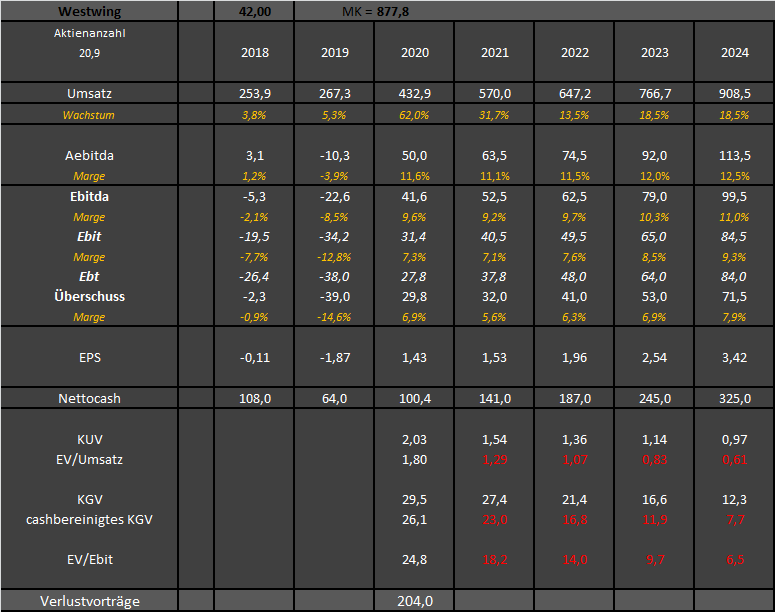 Währenddessen hat der Dax/MDax und Dow Jones sehr klare Allzeithochs hingelegt und diverse Zykliker haben extrem stark performed, sogar die teils bilanzschwachen Automibilwerte und Zulieferer mit teils unsicheren Geschäftsaussichten. Auch diverse Rohstoffwerte und Konsumwerte haben extrem zugelegt, in meinem Depot performen sie seit einem halben Jahr die Corona-Gewinner klar aus. Selbst das alles (also die Performance) muss noch kein Argument gegen halbgotts Argumentation sein, aber wenn man dann zum Kern kommt, also der Bewertung im vergleich zur Perspektive, sehe ich mittlerweile viele Zykliker, die mit KGVs um die 20 bewertet werden, und zwar schon für die Prognosen für 2021/22, die teilweise sogar die Hochs von 2019 wieder erreicht oder überschritten haben. Wenn ich mir jetzt im Vergleich Westwing anschaue, die noch jahrelang zweistellig wachsen dürfte, aber nur mit EV/UMsatz von 1,0-1,1 (bei 11-12% Marge) und EV/Überschuss von 16-17 fürs kommende Jahr bewertet wird, dann frage ich mich, wieso ich ausgerechnet jetzt in die Corona-Verlierer, Zykliker etc. einsteigen soll und die Aktien vernachlässigen soll, die die letzten 4-5 Monate schon entgegen ihrer starken Gewinnentwicklung und Wachstumsfantasie underperformed haben.