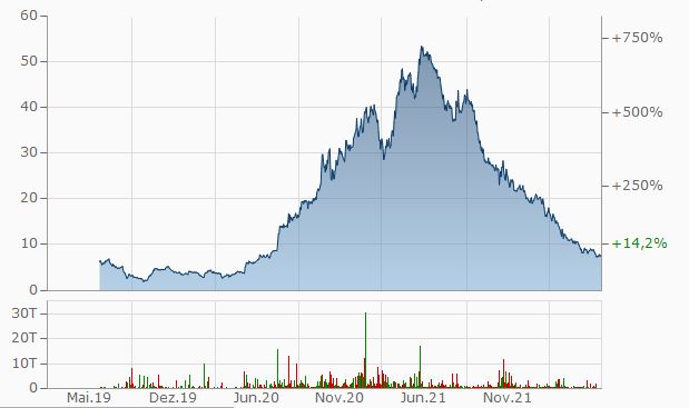 Ob sich eine Aktie auf diesem unterstem Niveau auch mal erholen würde können, ist doch keine Frage? Ändert aber rein gar nix an meiner grundsätzlichen Kritik und auch nicht an meiner ganz grundsätzlichen Einschätzung, daß sich nämlich Corona Verlierer in der Gegenweart und Zukunft besser als Corona Gewinner entwicklen würden können und daß man bei Corona Gewinnern erst mal sehen wird müssen, wie sich die Sache rein faktisch in Nicht-Coronazeiten entwickeln würde. Also im Hochsommer. Bis dahin vergeht richtig viel Zeit. Könnte sein, daß der Aktienkurs sich vorher schon erholt, aber sorry, das mus in Zeiten steigender Zinsen, größeren Inflationssorgen und Lieferkettenproblemen in Kriegszeiten einigermaßen spekulativ sein.