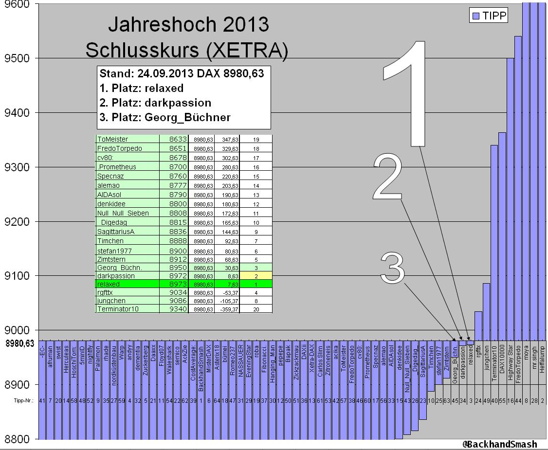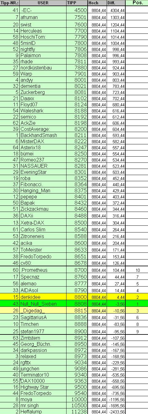 Allerdings muss ich bei meiner Aussage aus meiner Schätzung bleiben. Ich weiß nicht wo der DAX heute Abend schließt, also kann ich nicht annähernd abschätzen wo der DAX sein Jahreshoch hat.