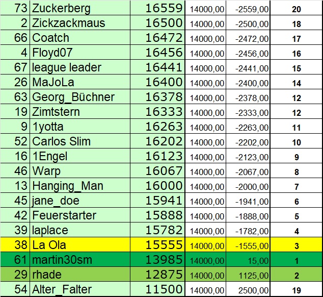 Das alte Tippspiel neigt sich ebenfalls dem Ende entgegen, Zeit sich für das neue Jahr Gedanken zu machen. Geht es bis zum Jahresende 2022 weiter nach oben, oder sehen wir tiefere Kurse oder bleibt alles so wie es ist ? Wir sind auf die Gewinner 2022 schon jetzt gespannt.