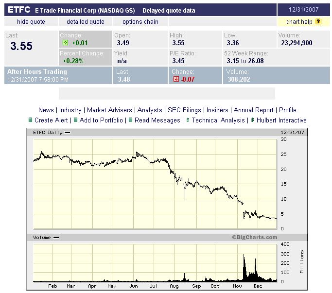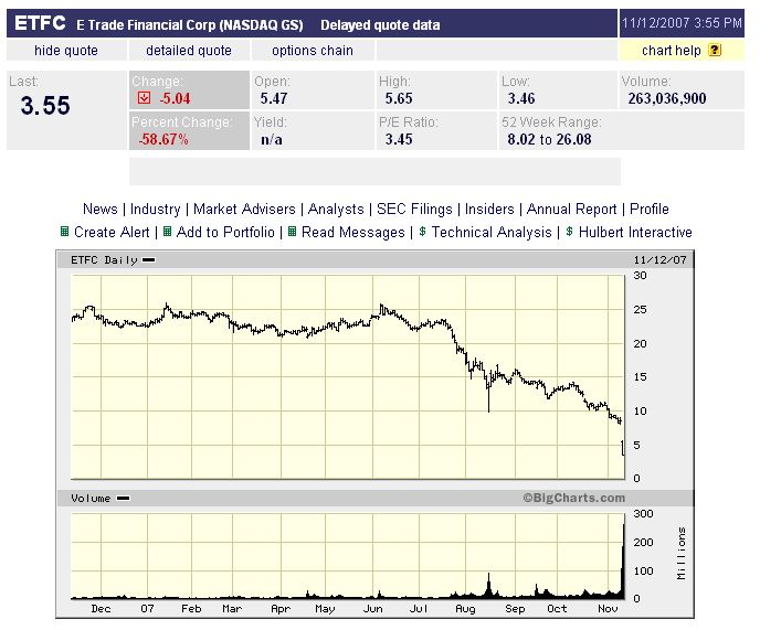 Trauerspiel: Der Chart des (Kleinanleger-)Brokers Etrade ähnelt den Charts amerikanischer Subprime-Hypothekenverleiher...