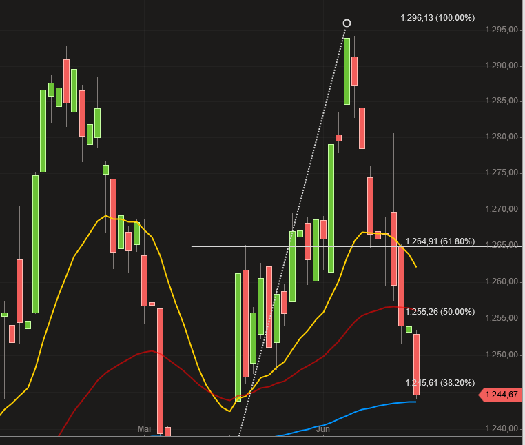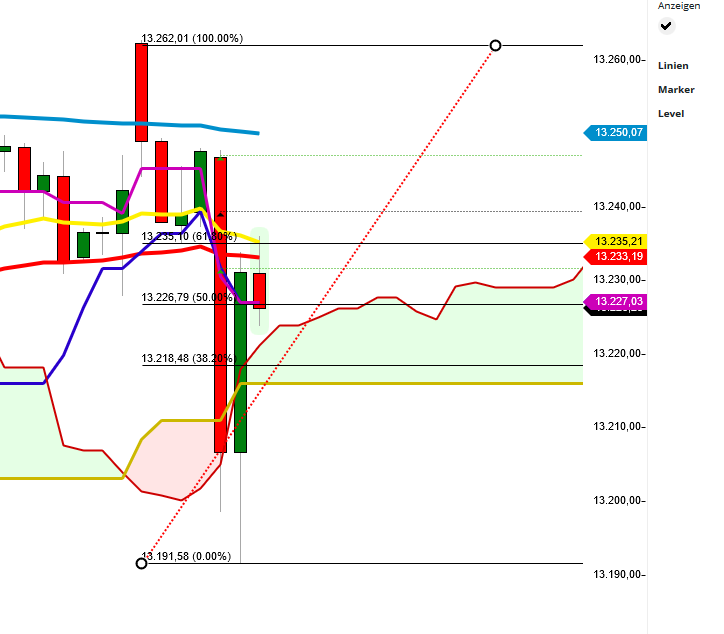 Das Kursziel 195,25 Euro für VW errechne ich aus dem Fibanocciretracement, die gemesse Strecke vom Tief 86,40 zum Hoch 262,60, das 61,8 liegt bei 195,25 Euro.