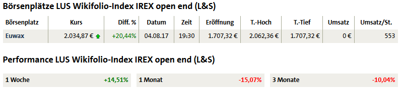 Gekommen ist es anders, ich habe zugesehen, wie das Wiki mit dem fallenden DAX 20 Prozent an Wert verloren hat.