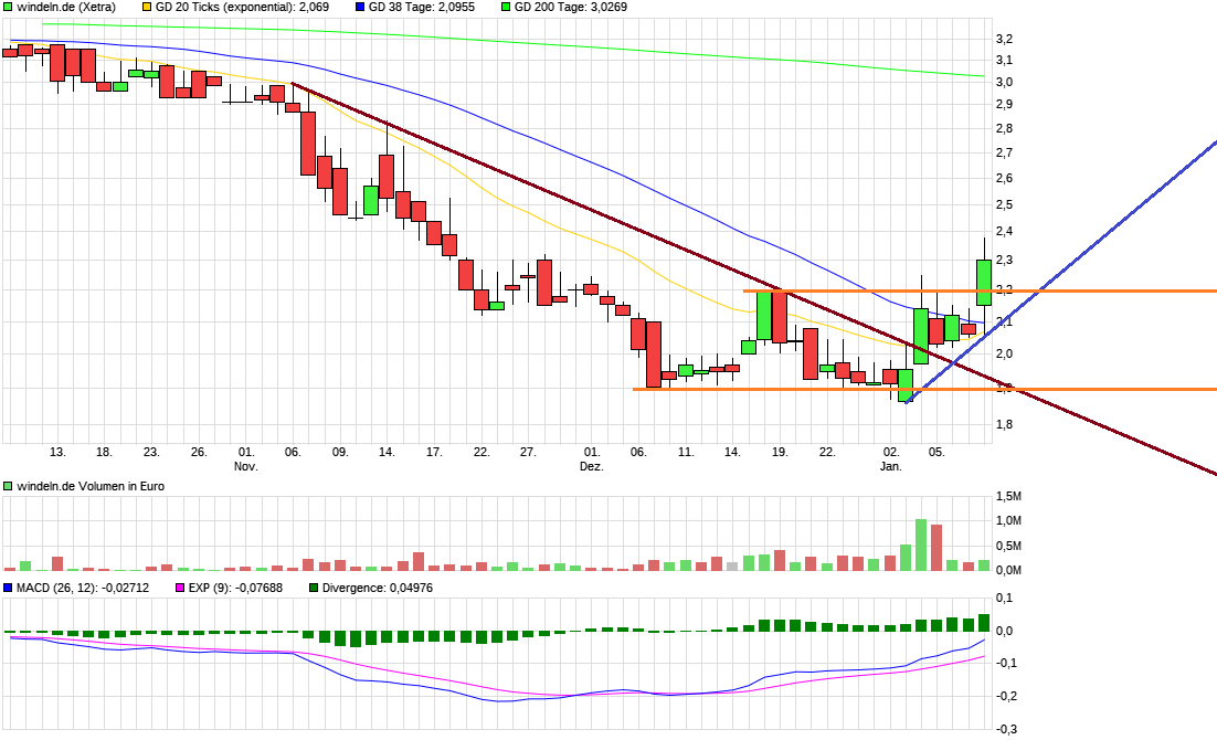 Kursverfall von 2,9 € auf 1,9 € seit Mitte November nachweisbar auf die Verkäufe von Sanz zurückzuführen. Daher kann ich mir durchaus vorstellen, dass der Kurs wieder bis 2,9 € hochläuft. Einfach ne Frage von Angebot und Nachfrage.
