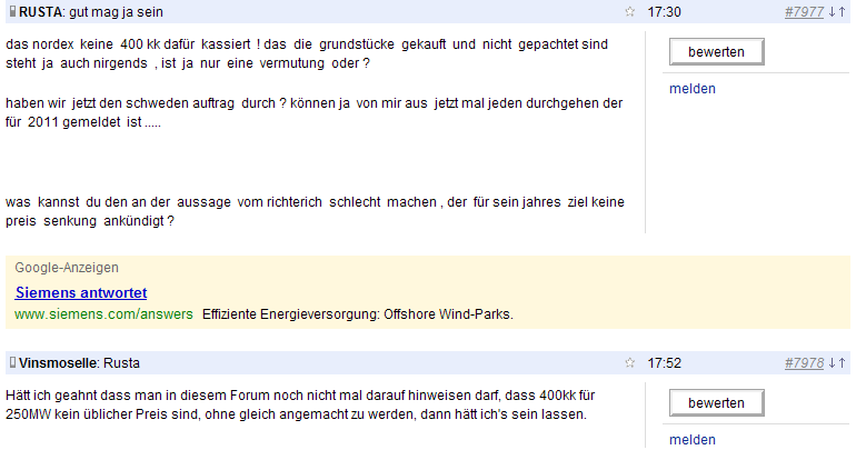 Wir hatten damals eine Diskussion in dem anderen Forum, wo Thesame sagte er sei zu dem verblüffenden Schluss gekommen, Nordex habe 1119 mio Aufträge für das Jahr 2011. So optimistisch bist selbst DU ja nicht ;)