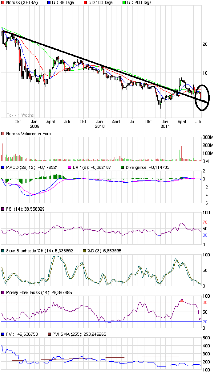 sind alternative Energie die zukunft...aber erstmal heißt es gegen die Chinesen anstinken und sich in einem gesättigten Markt zu positionieren...atm möchte doch jeder (ob Siemens, Vestas, Gamesa oder Made in China) etwas vom lukrativen "Merkel-Liebling"...welches Land gibt momentan Geld für Winderräder aus? Eurokrise und amerik. Haushaltslage verhindern doch Investitionen...und Nordex ist zu 90% abhängig vom europäischen Markt...das sieht bei Gamesa und Vestas schon etwas anders aus...also kurzfristig ist hier sicherlich kein großer Blumentopf zu gewinnen...langfristig schon eher..denn eigentlich traue ich den Klattens Investitionsgeschick zu...