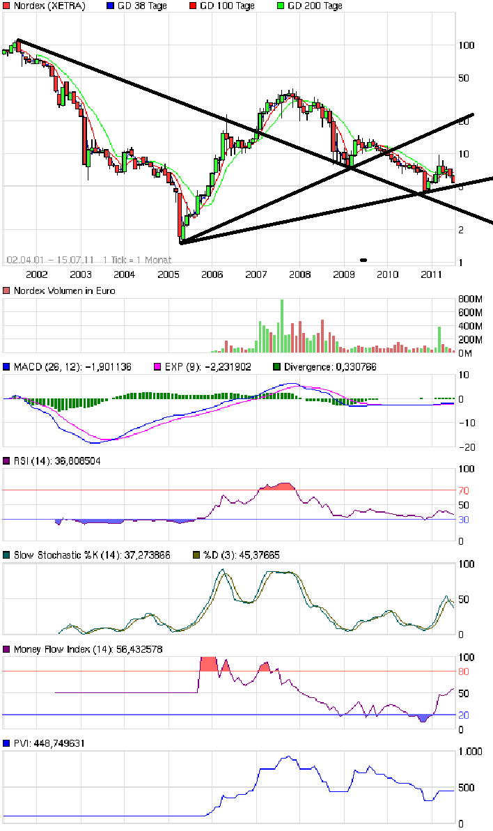 Die Zahlen sprechen für sich und an den aktuellen Aufträgen kann ich für 2011 auch keine grundlegende Besserung erkennen. Auch ein Vergleich mit der Konkurrenz fällt negativ aus. Wobei auch da die Eigenkapitalrenditen und die EBIT-Marge kein Vorzeigeobjekt ist. Aber zumindest ist das KGV bei zB Vestas etwas bodenständiger (13,25).