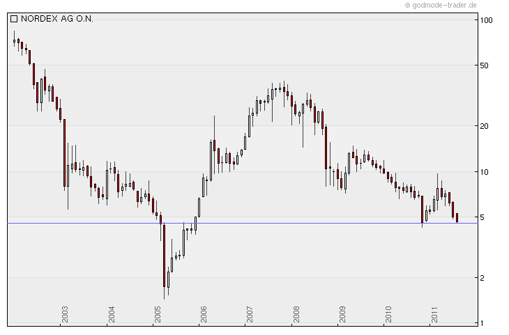 Ab da ging ers permanent runter! Also ist die Frage wer denn da als instutionelle Investoren so viele Aktien von Nordex zu 8,40 zeichnen wollte und warum!