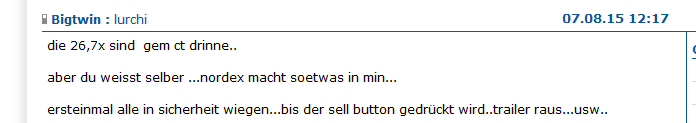 Ich lese in dem Forum nun schon seit einiger Zeit mit. War davor (leider) in Apple investiert, hatte aber schon lange ein Auge auf Nordex geworfen. Deshalb kann auch ich sagen: Mich stören die Beiträge nicht im Geringsten. Ich finde sie sehr interessant, und beachtenswert! Hut ab! Nur an der Grammatik / dem Satzbau könnte Bigtwin mal arbeiten, ist immer so schwer deine Texte zu verstehen :D Bitte nicht persönlich nehmen :)