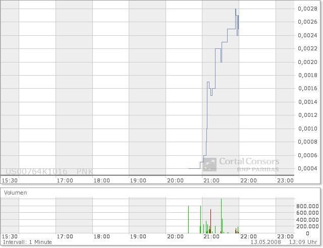 Gestern kam der Kurs nur leicht zurück auf 0,005 Dollar und verlor somit auf dem Montagsschlußkurs nur 16%.