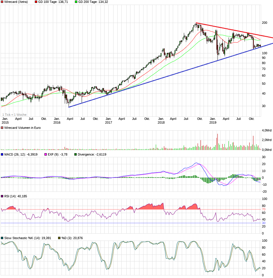 Ohne Nachrichten zu Wirecard ging es um rund 3% abwärts. Der Kursrutsch des Dax mag dafür nicht als Erklärung herhalten, denn der begann erst sehr viel später. Da waren bei Wirecard schon 2 Euro weg.