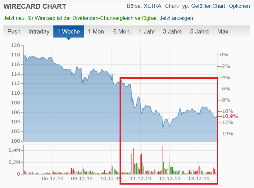 Aber mittlerweile erwähnt man wenigstens in der "Fachpresse", dass die Kursverluste den LV geschuldet sind (Hedgefonds wetten auf Wirecard Kurssturz).