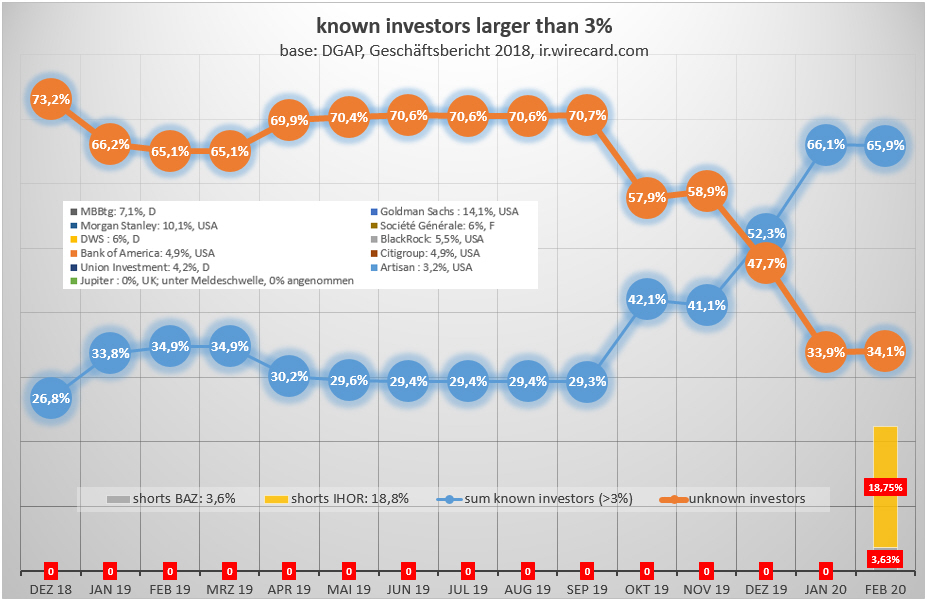 Jetzt richten sich die Blicke auf den 8.4. Sind noch 7 1/2 Wochen, in denen wieder viele News kommen können. Wichtig wird sein, dass das Testat für FY19 erteilt wird (ich weiß, eine Selbstverständlichkeit - aber das nimmt auch Unsicherheit raus), EY wird sich für das Testat mit Sicherheit den KPMG-Bericht anschauen, der hoffentlich dann auch am 8.4. veröffentlich wird. Die Ausnahmegenehmigung für Singapur könnte auch im Februar kommen und vielleicht liest ja sogar die CAD in Singapur den KPMG-Bericht und beschäftigt sich mit etwas anderem.