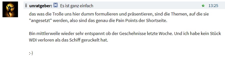 Da ich bereits über 12 Jahre bei unzähligen Aktienthreads hier bei Ariva (davon 2 als stiller Mitleser) mehr oder weniger aktiv war, folgende ''Empfehlung'':