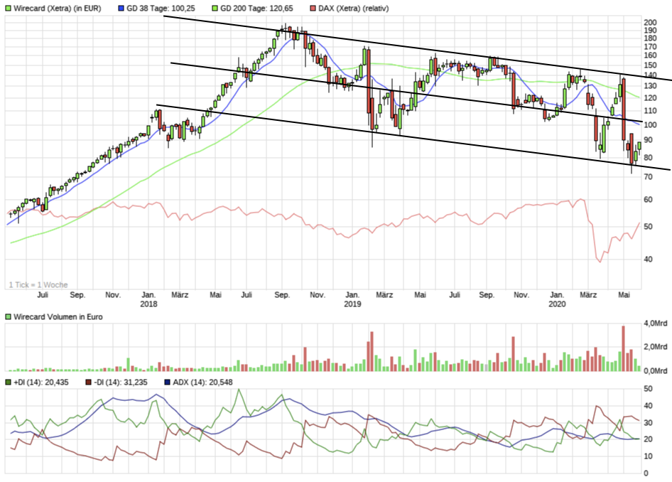 Lynxbrokers kurzfristiger horizontaler Widerstand bei 95 in Ehren -- aber wenn man sich das langfristig anschaut, dann sag ich nur: so ein schöner Kanal aber auch! Das läuft so seit Januar 2018, und wurde zuletzt glorios bestätigt.