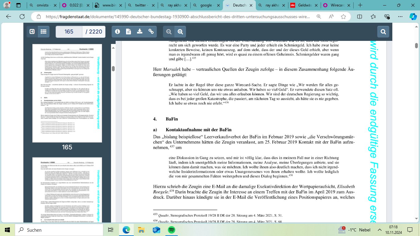 ich breche hier mal ab und gehe das Geschreibsel mal komplett durch. Mein Eindruck ist schon jetzt (und den habe ich bereits gestern geäußert): Der Zeuge ist ziemlich nutzlos. Er hat keine Ahnung, spekuliert und baut Dinge ein, die er halt so gehört hat. Er hat keine Ahnung von den entscheidenden Fragen.