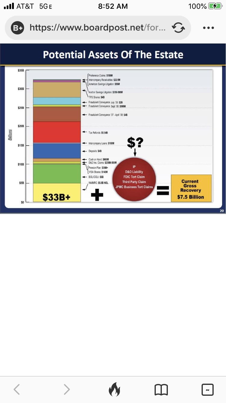 Nun, es kann nicht Alvarez & Marsal sein, der das bestimmt, oder? Da A&M die ganze Zeit über die Interessen sowohl der institutionellen als auch der Inhaber von Retail Escrows vertreten hat, liegt es nahe, dass sie in einem Konflikt miteinander stehen würden, wenn sie die Interessen der institutionellen VS. Wenn ich verstehe, was mordicai sagt, ist das genau das, was wir fordern: eine Bewertung der Vermögenswerte, die den Einzelhandel auf Kosten der institutionellen bereichern würde.