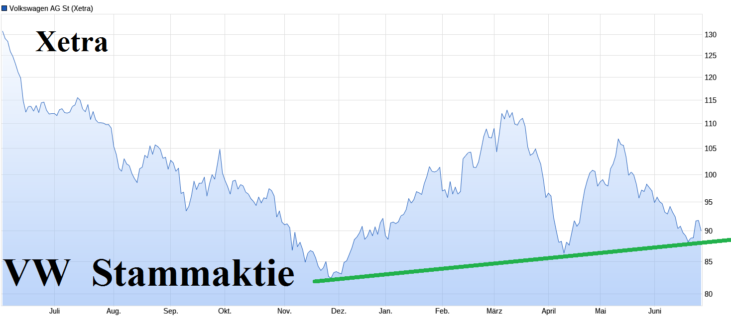 Ich habe heute z. B. wieder meinen VW-Anteil erhöht, d. h. eine Tranche zu 89,32 und eine weitere zu 88,32. Allerdings ist VW derzeit ohnehin meine bevorzugte "Trading-Aktie".