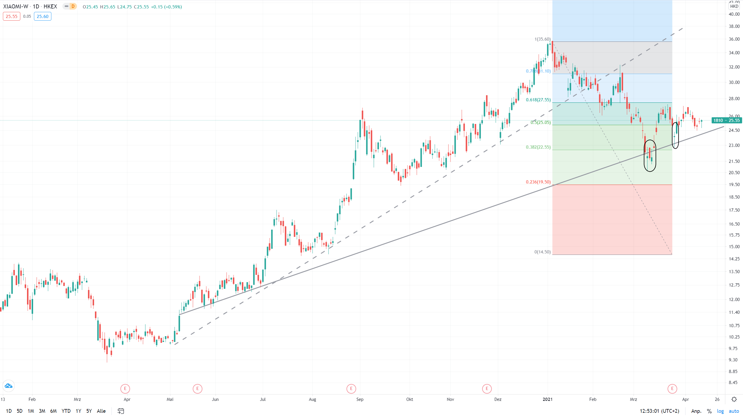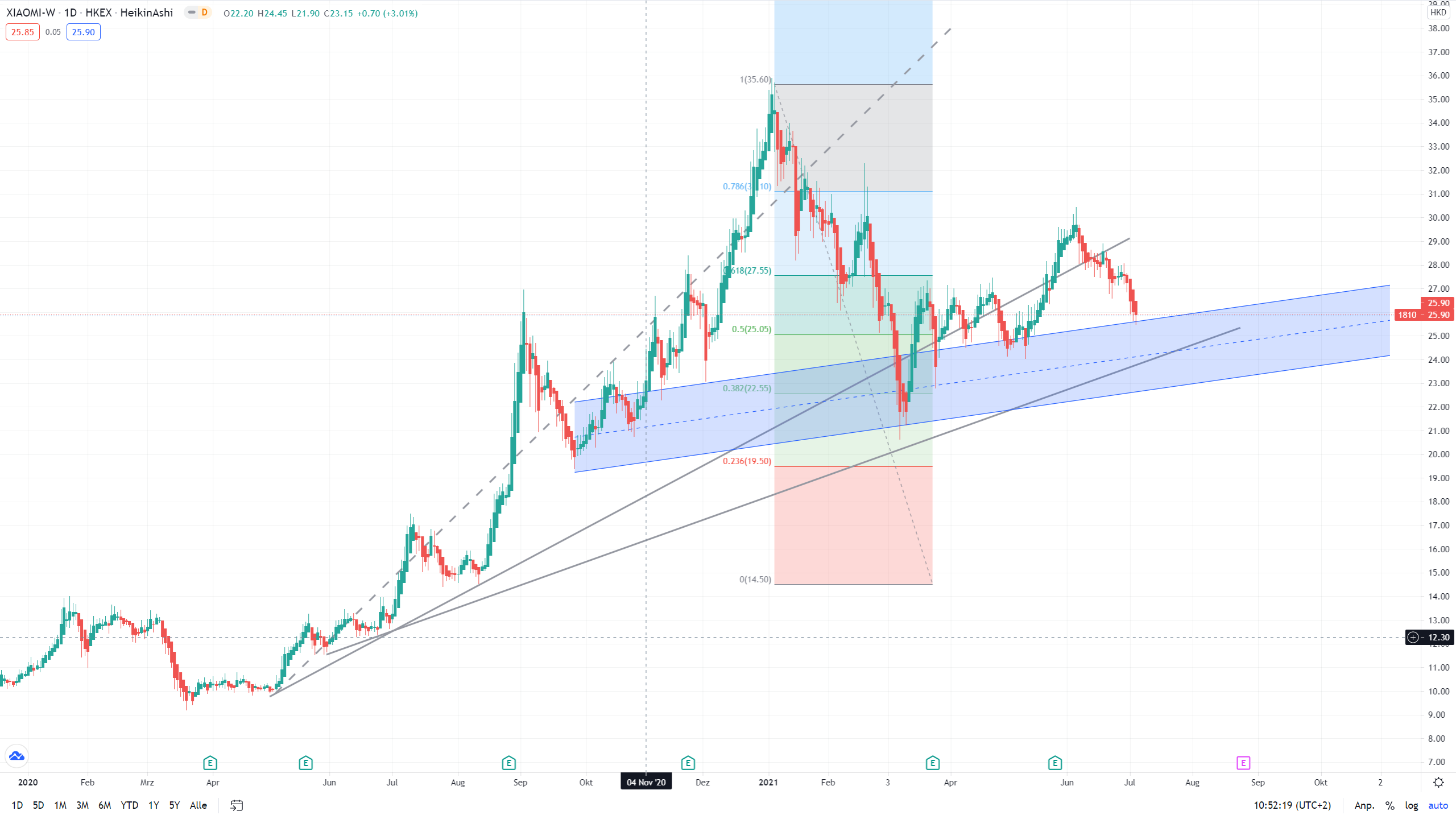 Ist für mich ein ganz klarer Hold mit Trend zum Kauf. Wer einsteigen oder nachladen will und Nerven fürs timing hat, sollte noch abwarten. Ein Gapclose wäre jetzt das sauberste, was man in diesem Jahr von Xiaomi bekommen kann. Auch wenn er vorher den downmove stoppt, ist es schon nicht mehr teuer.