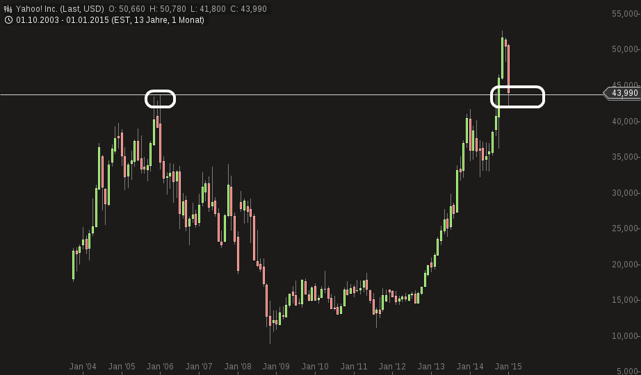 Die Amazon-Zahlen waren eine einzige Katastrophe, die Erwartungen nicht realistisch und das Hoch dürften wir bei Kursen von um $360 jetzt auch gesehen haben. Die kommenden 2-3 Tage erwarte ich entsprechende Umschichtungen in BABA und Yahoo!, bevor man Amazon auf das Maß zurechtstutzt, wo es auch hingehört. BABA und Yahoo! dürften nur moderat steigen, weil man sich ja günstig einkaufen möchte. Übernahme hin oder her: Wer sich BABA über Yahoo! kauft und im schlimmsten Fall 5 Jahre über SpinCo. an diese Beteiligung gefesselt sein wird, macht auf jeden Fall ein klasse Geschäft. Die heutige Yahoo!-Aktie würde bis zur Aufspaltung in SpinCo. und Yahoo! auch das gesamte (prognostizierte) Potenzial aufzeigen, weil sonst nämlich (bei einer späteren positiven Entwicklung der "neuen" Yahoo-Aktie (ohne BABA) enorme Steuernachteile für diese Yahoo!-Beteiligung winken. Von Optionsscheinen mit Laufzeiten bis nach 09/2015 würde ich in jedem Fall die Finger lassen. Wenn wir jetzt doch noch eine kleine Rallye bei Yahoo! erleben und BABA gleichzeitig etwas zurückbleibt, sollte man mögliche Gewinne in 09/2015er Scheine umschichten. Das dürfte bis dahin dann richtig gut abgehen!