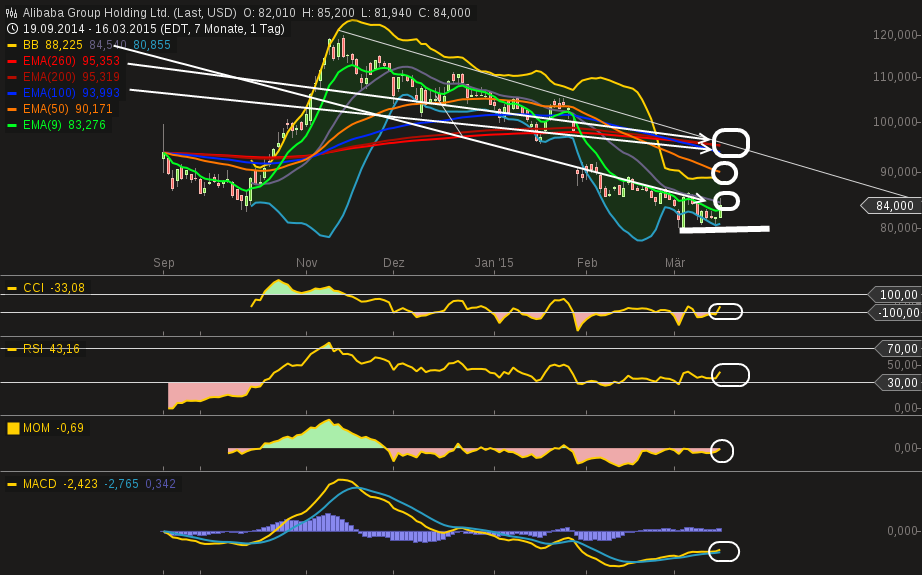 Ich bin da nicht so "pessimistisch", was die kurzfristige Entwicklung von Alibaba angeht. Ich habe noch immer die Meldung vor Augen, dass das IPO mehrfach überzeichnet war und dass gerade die großen Investoren und Fonds nicht so zum Zuge kamen, wie sie es eigentlich wollten. Deshalb findet heute (und in den nächsten Tagen) eben das IPO 2.0 von Alibaba statt: Noch einmal jede Menge Aktien, die es eben nicht zu Preisen von $120 oder höher zu kaufen gibt - und natürlich ist da noch der luftleere Raum bis $68, aber warum sollte irgendwer seine Papiere zu diesem Preis wirklich verkaufen (wollen), zumal es de facto keine nachvollziehbaren Gründe dafür gibt? Die Zahlen zum Jahresende waren wirklich sehr gut und dann wurde mit allem Nachdruck so viel Schwachsinn hinein interpretiert, dass man zu keinem anderen Ergebnis kommen kann, als dass hier auf breiter Front (hauptsächlich über Medien-Schelte) manipuliert wurde, auch um diese Gelegenheit (ab heute) noch mitzunehmen zu können.