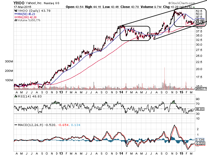 Ganz am Ende noch eine kurze Anmerkung zu SpinCo.: Der Termin der Ausgliederung bis Mitte Oktober wurde schon öffentlich genannt, daher kann man spekulativ schon darauf setzen. Wer (wie Maxxim) auf den Zeitraum bis 01/2016 für seine Optionen setzt, der muss natürlich mit gewissen Turbulenzen rechnen, wenn er sich nicht rechtzeitig genug davon trennt. Wenn es Yahoo! bis dahin als Unternehmen überhaupt noch geben wird, sollte es nicht sehr viel mehr als ca. $30 pro Aktie kosten, weil der größte Brocken bis dahin als SpinCo. ausgegliedert sein dürfte. Auch hiermit lässt sich übrigens di eKurschwäche von Yahoo! sehr gut begründen, nämlich dass sich die großen Investoren möglichst preiswert diese SpinCo.-Anteile sichern wollen und das Yahoo!-Kerngeschäft den Preis für diese Machenschaften zu zahlen hat, auch ordentlich unterstützt von einem mehr als unfähigen Yahoo!-Management.