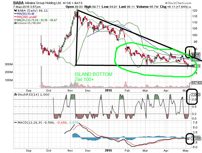 Es ist nich mehr lange hin, bis BABA seine Zahlen für sein Geschäftsjahr 2015 (April 2014 - März 2015) bzw. für für das 1. Quartal 2015 offenlegt. Allgemein werden ein sich abschwächendes Wachstum (41% YoY) und größere Belastungen durch die Expansion in neue Märkte erwartet.
