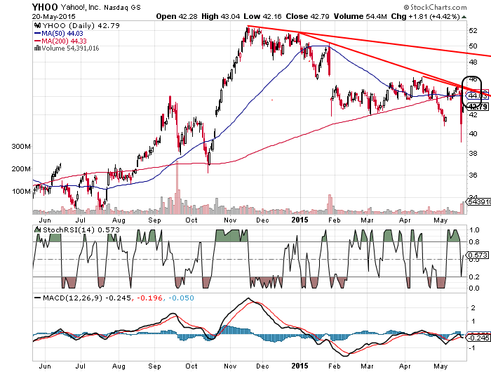 Es ist und bleibt eine Katastrophe für den künftigen Kursverlauf, was da gestern geschehen ist. Ein Non-Event hat uns in die Knie gezwungen, genauso wie die offensichtliche Missinterpretation der Q4/2014-Zahlen im Januar bei Alibaba. Unfassbar, was sich diese Verbrecher auf der anderen Seite des großen Teichs dort alles straffrei leisten können! Aber das kommt eben davon, wenn die Verbrecher nicht die Gejagten, sondern selbst die Jäger sind. Ich bin noch völlig konsterniert, zumal diese medial gestützten Machenschaften einfach kein Ende zu nehmen scheinen. Der heutige Anstieg ist zwar schön zu beobachten, aber diese Kursniveaus hatten wir doch schon vor 7 Monaten hinter uns gelassen und seitdem ist doch nichts wirklich Negatives geschehen, was einer $120-Bewertung von Alibaba oder einer $75-Bewertung von Yahoo! widersprechen würde! Diese Preise würden einer eher moderaten Bewertung von Tech-Werten entsprechen und wären damit auch heute (!) nicht zu teuer.