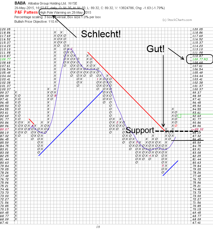 Alibaba ist neben dem Yahoo!-Management der zweite großer Verlierer in dieser Woche: Die Gewinne der Vorwoche wurden in dieser Woche fast vollständig wieder abgegeben. Das ist aber nicht wirklich nachvollziehbar, wenn man sich die guten Nachrichten und auch die Kennzahlen zur Unternehmensbewertung von Alibaba anschaut: Das KGV liegt z.B. noch immer ca. 10 bis 15 Punkte unterhalb der Wachstumsrate. Ein fairer Kurs läge auf dieser Basis momentan bei ca. $110, wenn man die vergangenen 4 Quartale betrachtet. Wenn man den erwarteten Gewinn der kommenden 4 Quartale heranzieht, dann wären ca. $130 angemessen. In dieser Größenordnung sollte sich der Kurs momentan eigentlich bewegen, aber da sind die Kursmanipulatoren an der Wall Street wohl ganz anderer Meinung!
