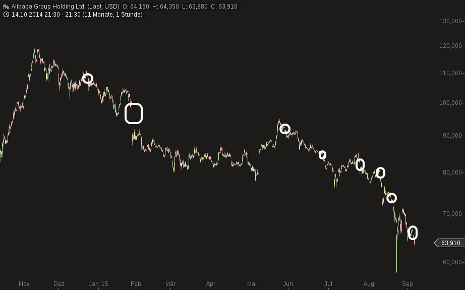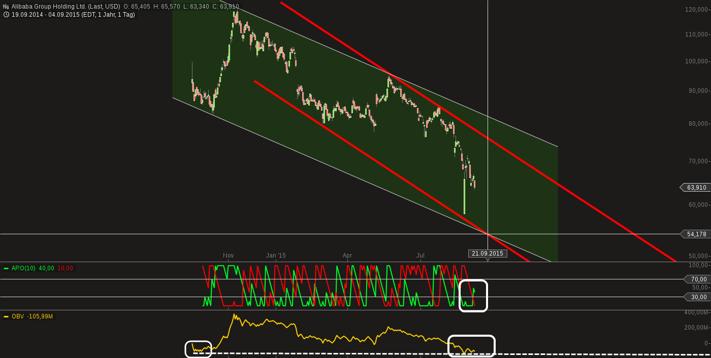... wenn die Turbulenzen in China der Vergangenheit angehören und im Falle von Yahoo! und BABA würde ich dann noch eine Grenze am 21.09.2015 ziehen wollen, wenn dann sämtliche Lock-Up-Perioden und -Restriktionen ablaufen. Das Rückkaufprogramm durch Yahoo! hat meiner Meinung nach noch nicht eingesetzt. Gleiches gilt auch für das Rückkaufprogramm von Alibaba. Um so viele Aktien vom Markt zu nehmen, braucht es schon Zahlen, die in etwa 50% über dem aktuellen durchschnittlichen Marktvolumen liegen, also irgendwo bei 20 Mio. Stück pro Tag über einen längeren Zeitraum (von vielleich 1-2 Wochen). Das wäre ein gutes Indiz dafür, dass Yahoo! und BABA endlich "einschreiten" und etwas Kurspflege betreiben. Der Kurssprung gestern war eher getrieben durch das IRS-Gerücht. Schade, wenn Yahoo! sein Rückkaufprogramm erst dann starten würde, wenn die IRS für einen Kurssprung sorgen würde, andererseits ist das Programm eine gute Kursabsicherung für den Fall, dass die IRS negativ entscheidet.