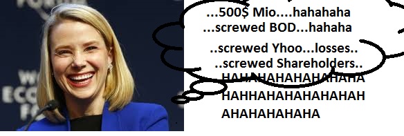 Wie viel öffentliche Demütigung kann diese Frau eigentlich noch ertragen? Warum zieht sie nicht die Notbremse und behält damit wenigstens ein ganz kleines Stück Restwürde für sich und ihr Team ein? Wie kann es sein, dass man so sehr von sich eingenommen ist, dass man offenbar nicht einmal mehr merkt, dass man derweit weitab im Abseits steht? Selbst wenn sie es schafft, Yahoo! mit einem relativ großen Aufpreis zu veräußern, wird der Preis bei Weitem unter dem liegen, was Yahoo! eigentlich wert wäre, und das nur weil sie noch CEO ist ...