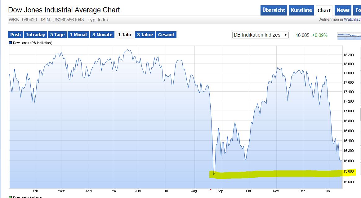 Was die Ökonomen und Analysten angeht, die uns im Moment die Hölle auf Erden prophezeien, fällt mir bald nichts mehr zu ein. Diese Menschen sind auf dem Stand des 20 Jahrhunderts, wo Öl, Gold und irgendwelche Prognosen wichtiger sind, als Fakten. Schon echt witzig, Jahrzehnte lang wurde uns eingeredet, dass wir spätestens 2050 keinen Tropfen Öl mehr haben werden und nun das: Öl ist relativ günstig, man könnte noch mehr fördern und weiß bald garnicht mehr wohin mit dem bereits geförderten Öl. Es gibt zig Tanker, die voll beladen auf den Weltmeeren im Kreis fahren, weil das geladene Öl nicht verkauft werden kann oder soll. Vor einem Jahr war der gefallene ölpreis ein kostenloses Konjunkturprogramm, heute ist es ein wichtiger Indikator für die schwächelnde Weltwirtschaft. Das aber seit den 90ern auch versucht wird, weniger Öl zu verbrauchen und dass dadurch natürlich der Bedarf etwas gemindert wird, spielt keine Rolle. Die Welt ist nicht mehr so wie 1980. Lediglich in den Köpfen von einigen Ökonomen. Warum Knicken den Kurse von unternehmen ein, die rein garnichts mit Öl zu tun haben? Weil alles im großen Ganzen miteinander zusammenhängt? Sicherlich! Aber dann kann man auch Vogelschwärme beobachten und in Relation zum kaffeepreis setzen, denn irgendeinen Zusammenhang wird man schon finden.