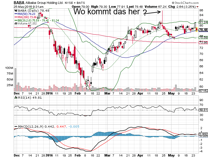Mich stört das geringe Volumen bei Yahoo! heute schon sehr, aber es könnte auch als Zeichen interpretiert werden, dass sich zu diesen Preisen niemand von seinem Investment verabschieden möchte. Bei Alibaba hingegen sehe ich das sehr positiv, wobei ich hier schon ziemlich gespannt bin, ob sich der Short Interest zum 15.05. (wie bei Yahoo!) inzwischen wesentlich reduziert hat!?