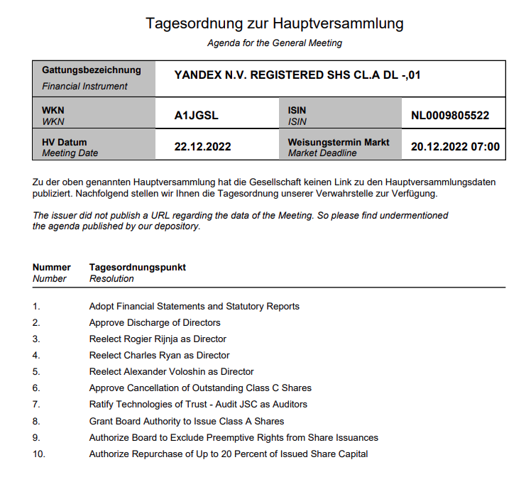 @Smarterinvest. - Die Abspaltung wird den Wert von Yandex natürlich erst mal reduzieren - wie sehr, kann auch ich Dir leider nicht sagen. Da ich ursprünglich mal mit einem mittel- bis langfristigen Horizont bei Yandex eingestiegen war, macht mir das aber erst mal nichts. Entscheidend ist zum einen, daß die Aktie hoffentlich mal wieder handelbar wird und zum anderen, ob das Unternehmen resilient und agil genug ist, sich fernab von Russland neue Zukunftsmärkte zu erschließen.