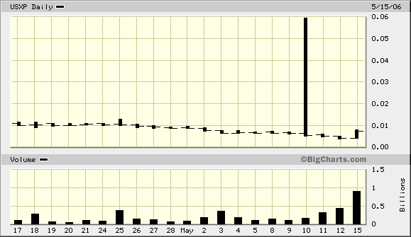 On recent news, the stock had a strong upsurge on increasing volume not seen since mid-last year. The stock needs to break through last year\'s downtrend line and close above .05 for the all-clear signal for a 1st objective of .08. There\'s no doubt, its recent battle with the SEC further differentiates this company from all others. The company is suing the SEC and feels the courts should enforce the judgment that it received ($600,000,000) because they feel that the SEC was responsible for the naked short selling that USXP was victim of. So as acquisitions materialize and strategic funding negotiations continues, and the SEC\'s case runs its normal course, the reality is that this exciting company has great potential and its stock is undervalued. Add/Buy.""""