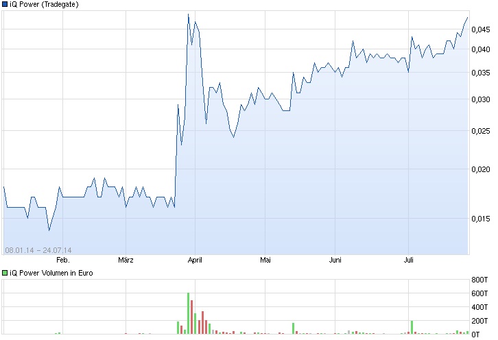"Vor dem Hintergrund wachsender Umsätze ihrer Lizenznehmer mit Lizenzprodukten rechnet die iQ Power AG für das gesamte Geschäftsjahr 2014 mit einer weiteren Verbesserung der eigenen Umsatz- und Ertragslage." (www.iqpower.com/index.php?pid=1,1&id_news=1203)