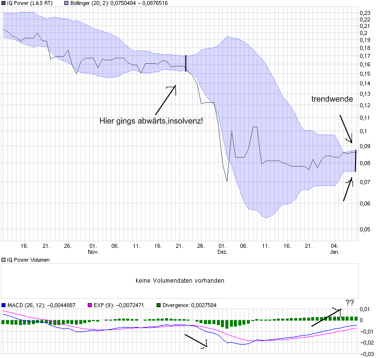 wie bereits mehrfach gepostet bin ich hier für meine verhältnisse relativ hoch investiert, habe bisher auch nur mit verlust verkauft, bin mit der informationspolitik von iq überhaupt nicht einverstanden und lebe eigentlich vom prinzip hoffnung.... wenn ich überlege in was für eine fa. ich hier investiert bin müssten sich bei mir eigentlich alle nackenhaare zu berge stehen... - doch dann kommt die gier!? was soll denn iq als marktneuling für eine werbung gegenüber den grossen machen? wegen iq wird keine einzige batterie weltweit mehr verkauft, also müssen marktanteile anderen weggenommen werden. diese wiederum lässt man solange im unklaren seitens der anbieter bis klar ist, dass geswitched wurde. arbeite selbst im verkauf und alte lieferanten lässt man halt dumm sterben.... - so ist das nun halt mal. rechne zwar nicht mit einem totalverlust bei meinem invest.... - hoffe aber auf mindestens 0,20 - 0,25 cent in der spitze dieses jahr.