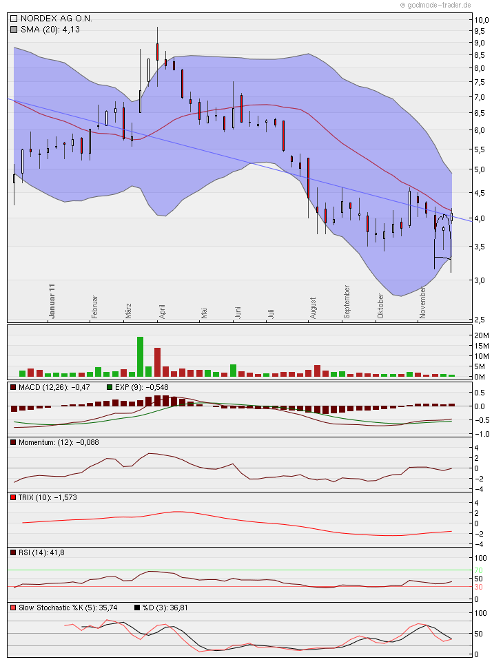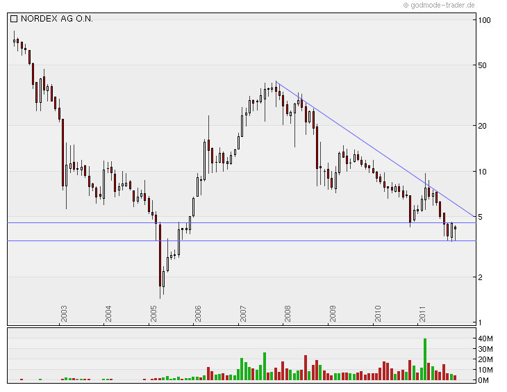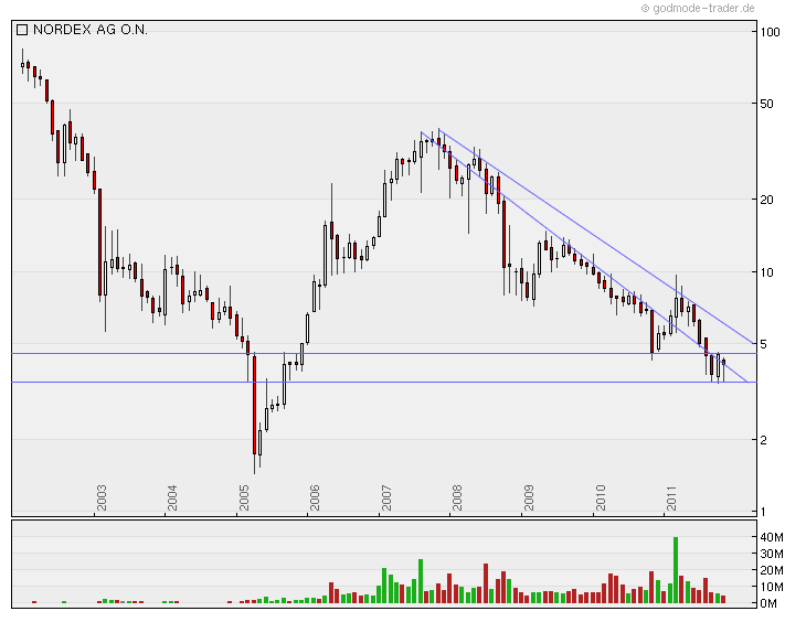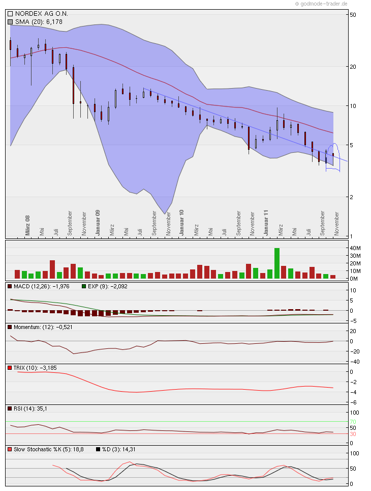 Ein Abwärtstrend wurde hinter sich gelassen und erfolgreich mit der Monatskerze HAMMER getestet!!! Slow Stochastik-Oszillator (Oszillatoren sind aussagekräftig für Seitwärtsmärkte wie es zurzeit bei Nordex der Fall ist) hat wie gestern von mir eingeschätzt Kaufsignal generiert!!!