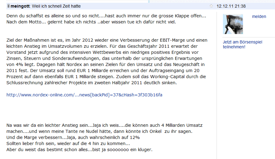 Na was wir da ein leichter Anstieg sein...Jaja ich weis....die können auch 4 Milliarden Umsatz machen....und wenn meine Tante ne Nudel hätte, dann könnte ich Onkel zu ihr sagen.