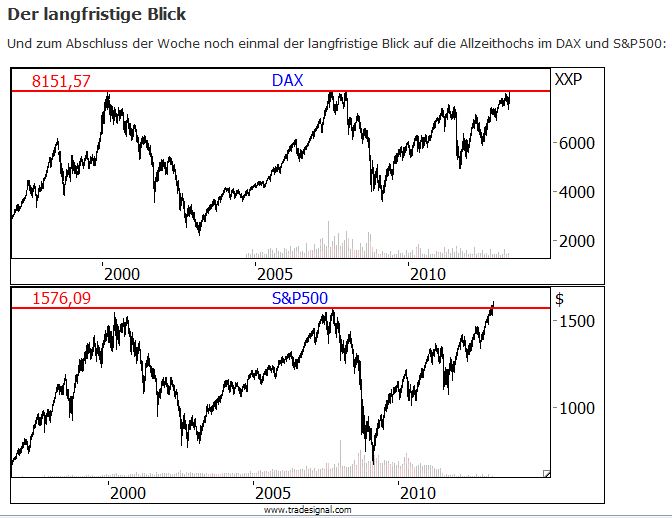 Auszug (dort grün hinterlegt): "ACHTUNG! Etabliert sich der DAX oberhalb von 8150, so setzt ein massives, langfristiges Kaufsignal 1. Güte ein, weitreichend, über Jahre! Etabliert sich der DAX per Monatsschluss über 8150, so aktivieren sich umgehend Ziele bei 9225 (wenige Wochen) sowie 10870/11811 (1-2 Jahre), siehe Chart 3."