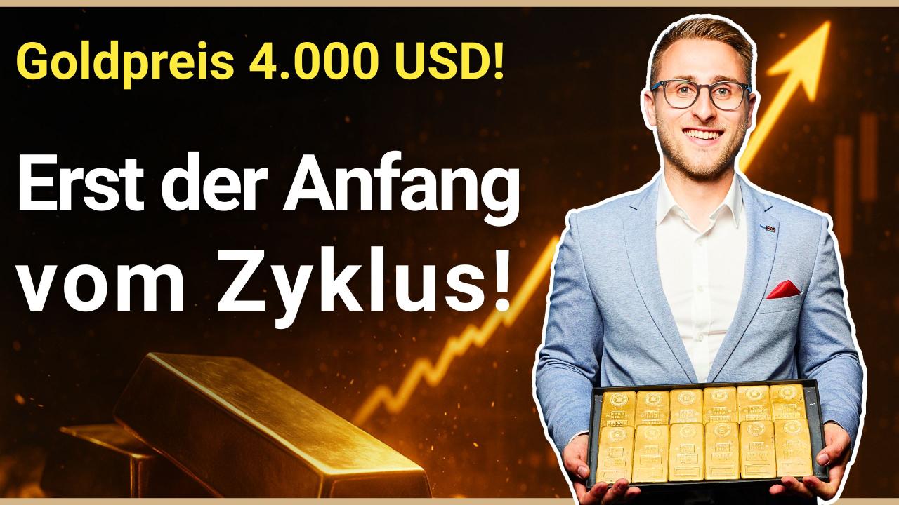 Der historische Moment ist da: Gold hat die magische 4000 $-Marke erreicht. Warum Gold gerade explodiert und warum jetzt ein neuer Superzyklus bei Edelmetallen begonnen hat, darum soll es heute gehen! #goldpreis #gold #aktien #finanzen Rechtlicher Hinweis: Dieses Video dient ausschließlich der allgemeinen Information und stellt keine Anlageberatung oder Empfehlung im Sinne des § 34b WpHG, § 85 BörseG oder der Marktmissbrauchsverordnung (EU) Nr. 596/2014 dar. Es handelt sich nicht um eine unabhängige Finanzanalyse, sondern um journalistische bzw. werbliche Inhalte. Die AXINO Capital GmbH und/oder verbundene Unternehmen sowie deren Mitarbeiter halten oder können Aktien der im Video genannten Unternehmen halten und behalten sich vor, diese jederzeit zu erhöhen oder ganz oder teilweise zu veräußern. Die AXINO Capital GmbH wird von einigen dieser Unternehmen entgeltlich vergütet (z. B. für Marketing- oder Beratungsleistungen). Der Erwerb von Wertpapieren ist mit erheblichen Risiken verbunden und kann zum Totalverlust des eingesetzten Kapitals führen. Weitere Hinweise: https://axinocapital.de/disclaimer ** Welchen Broker empfehlen wir? ► SMARTBROKER+ Jetzt bei SMARTBROKER+ anmelden https://dwbdiv.smartbrokerplus.de/ts/94450/tsc?typ=r&amc=con.smartbrokerplus.536976.560227.CRTFTDvPqPZ und Willkommensgeschenk erhalten! Keine Anlageberatung! Bitte beachte unseren Disclaimer und unsere Interessenskonflikte! Für unsere Grafiken nutzen wir gerne: https://www.gold.de/ Aktueller Goldpreis: https://www.goldpreis.de/ Unsere Technischen Analysen: www.boersenninja.de Jan Willhöft (AXINO): https://www.linkedin.com/in/janwillh%C3%B6ft/ ► DU interessierst dich fürs Trading? Schau gerne bei Stefan vorbei! Was ist axinocapital? Wir sind Deine Investoren-Community mit besonderer Leidenschaft für Rohstoffe und Hoch-Technologien. Ohne diese können wir unseren Lebensstandard nicht halten und erst recht keinen Fortschritt erzielen. Rohstoffvorkommen und neue Technologien müssen aber zuerst erkundet, das heißt exploriert und entwickelt werden, was meist durch kleinere Unternehmen beginnt. Small Cap Companies möchten schnell bekannt werden und Investoren & Aktionäre in möglichst vielen Ländern ansprechen und überzeugen. axinocapital bietet zahlreichen australischen und kanadischen Unternehmen ihren Corporate Communication Service im deutschsprachigen Raum. Wir entdecken dabei Chancen & Potentiale in schnell wachsenden Sektoren. Dazu zählen im Besonderen die Edelmetalle - aber nicht nur. Der Bedarf zum Beispiel an Batterie-Metallen und Grüne-Technologien wird mit zunehmend globaler Elektrifizierung explodieren - unser Stichwort: E-Mobilität. Wir vertreten aber auch bereits produzierende Minen. Recycling wird ebenfalls immer mehr an Bedeutung gewinnen. In der axinocapital Community tauschst Du Dich mit anderen Begeisterten aus, die bei diesen Entwicklungen dabei sein wollen. Dabei kannst Du auch Dein Wissen rund um Rohstoffe, Edelmetalle und Small Cap Companies erweitern. Für echte Geheimtipps und spannende Trends sorgen wir mit unserer 35-jährigen Investment-Erfahrung. Auf dem Laufenden bleiben ► https://www.axinocapital.de/newsletter Investorenbroschüre ► https://www.axinocapital.de/redaktion/investor-magazin Website ► https://www.axinocapital.de/ Twitter ► https://twitter.com/axinocapital LinkedIn ► https://www.linkedin.com/in/wolfgang-seybold-a04a0913/ Instagram ► https://www.instagram.com/axinocapital/ *Bitte beachte unseren Disclaimer! Die AXINO Capital GmbH und deren Mitarbeiter sind keine Journalisten - wir veröffentlichen hier nur unsere Meinung, rufen aber gerne zur offenen und sachlichen Diskussion auf. Die Seybold Invest GmbH und Mitarbeiter der AXINO Capital GmbH können mit eigenem Geld in die besprochenen Firmen investiert sein. Zudem ist die AXINO Capital GmbH ein Dienstleister für Marketingaktivitäten in der Rohstoff & Small Cap Industrie. Unser Job ist das Aktienmarketing. Mehr Informationen unter axinocapital.de/disclaimer **Wir haben eine Werbe-Partnerschaft mit SMARTBROKER+ !