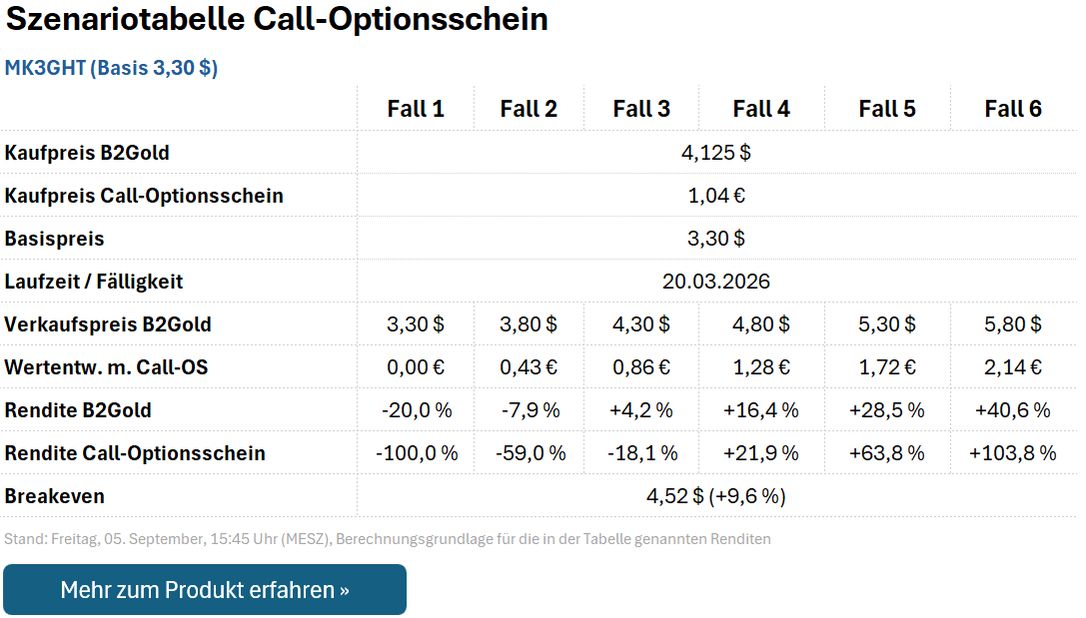 Call auf B2Gold Corp. [Morgan Stanley. 1,33 € Call auf B2Gold Corp. [Morgan Stanley & Co. International plc] Chart 0,00%