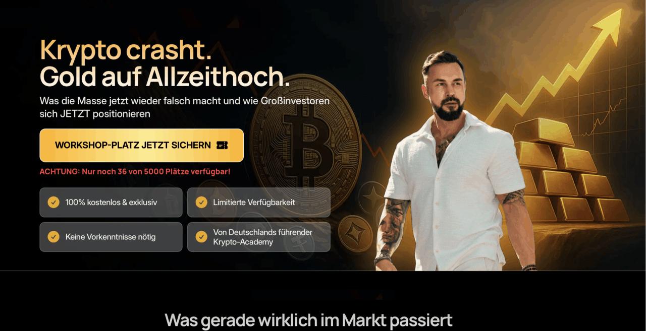 Der Workshop ist kostenlos, praxisnah und auch für Einsteiger geeignet. Du lernst, wie du dein Kapital klug strukturierst, Risiken minimierst und Chancen nutzt, bevor die Masse wieder einsteigt. Keine wilden Prognosen, keine leeren Versprechen, sondern fundierte Strategie, Klartext und echte Einblicke in das Denken erfahrener Investoren.